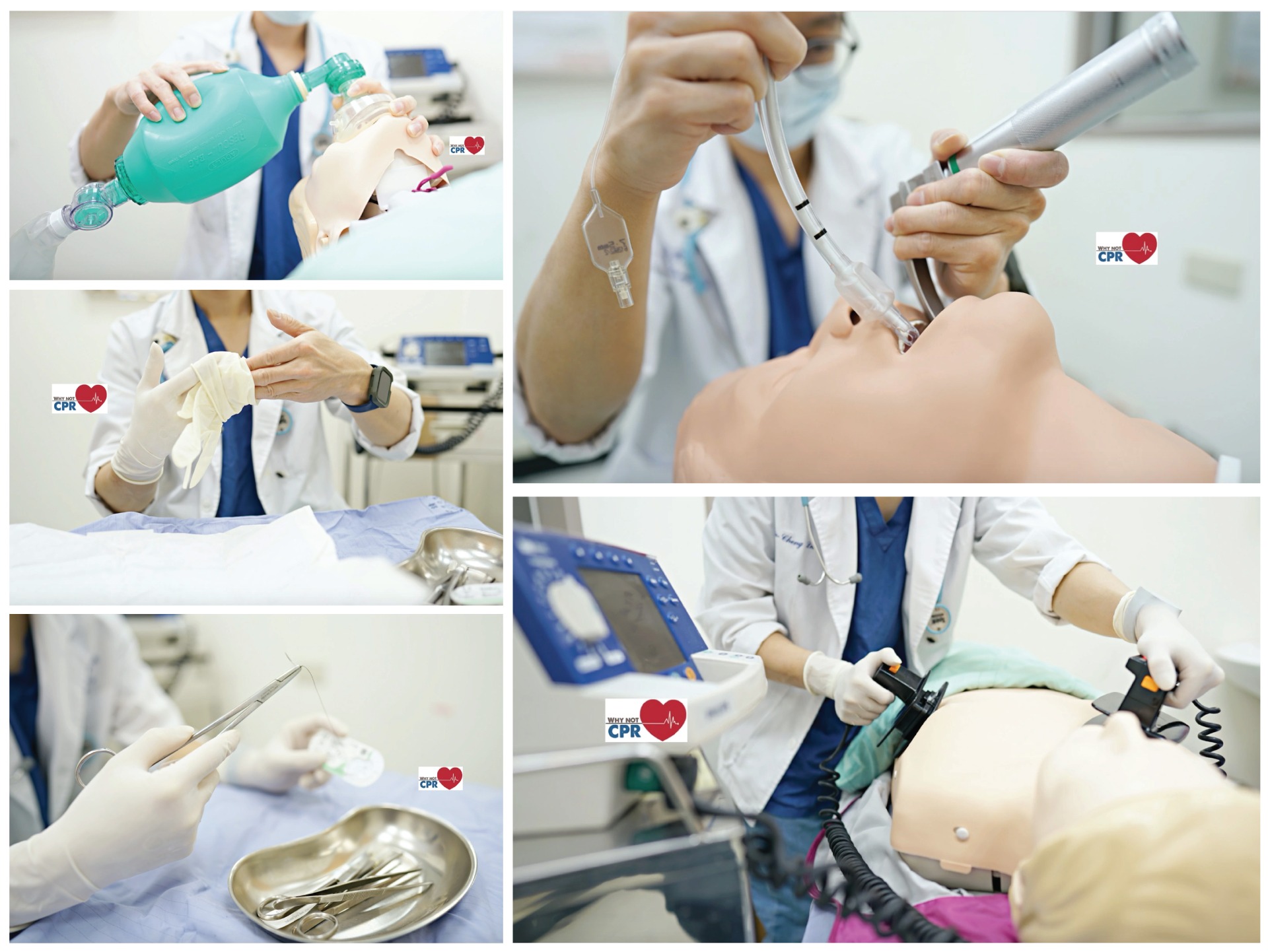 Why not CPR 講師群有著深厚的急重症臨床資歷,並具有專業的「高級成人救命術指導員 (ACLS instructor)」執照;同時也有豐富的教學經驗,將各類急重症與急救的課題,運用工作坊 (Workshop) 呈現給學生,讓學習不只是遠遠的講堂,而是走進學生的課桌旁,一起互動與學習,使學習不再是填鴨與壓力。